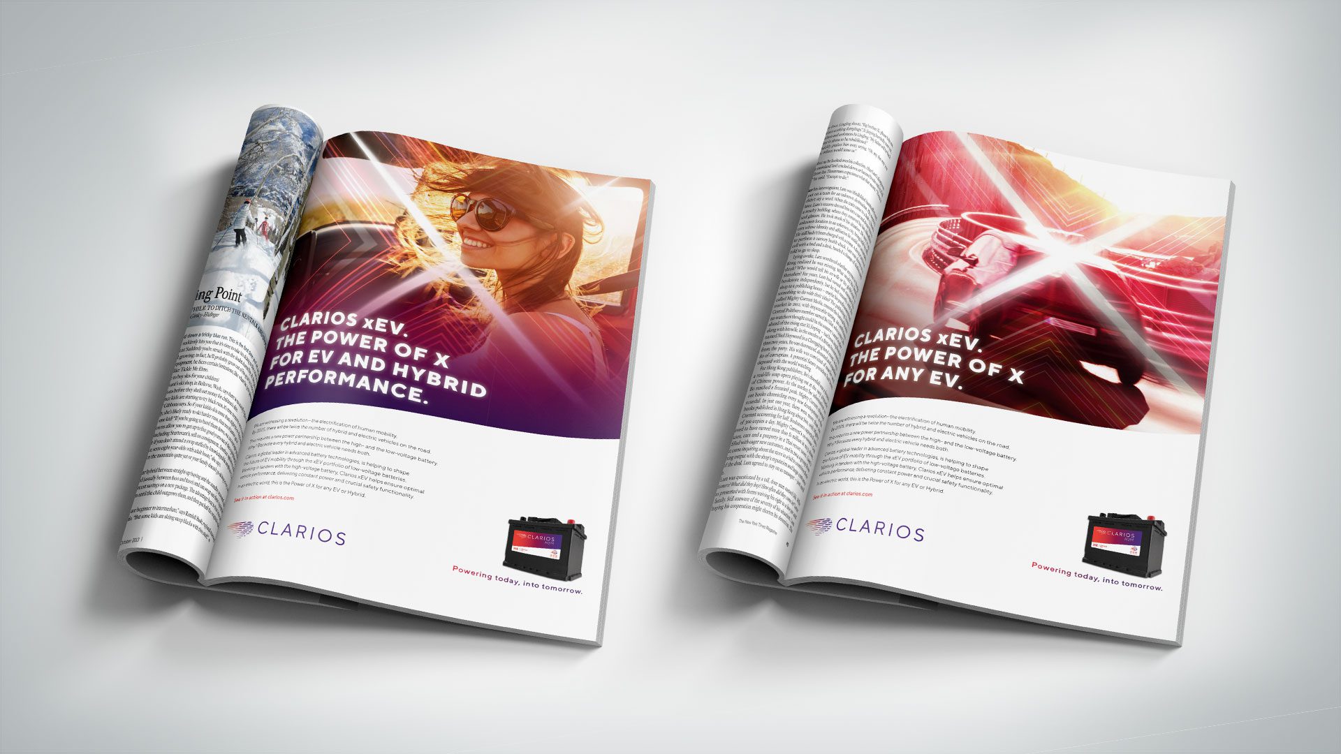 We teamed with Clarios on launching its first-ever Clarios-branded product — Clarios xEV — specifically designed for Hybrids and EVs. Our launch campaign, The Power of X, had to work double-duty. Not only did it have to generate awareness of xEV batteries, it also had to educate the general public that every Hybrid and EV needs a 12V battery – a little-known fact to most drivers around the world. We developed the strategy, messaging, identity, go-to-market plan and creative, and leading a multi-agency team of media and PR partners to launch with record-breaking results: 95% new website traffic, social channel growth, and 50%+ share of voice lift.Working as we do at the intersection of business strategy, brand, and culture, we were tasked with bringing clarity to the vision of a future shared by the combined employee groups. Subsequently, we were asked to help convey the strength, leadership, and capabilities of the new company to the financial community. Our theme for the Analyst Day event — “Tomorrow, today” — was an organizing idea for all content.