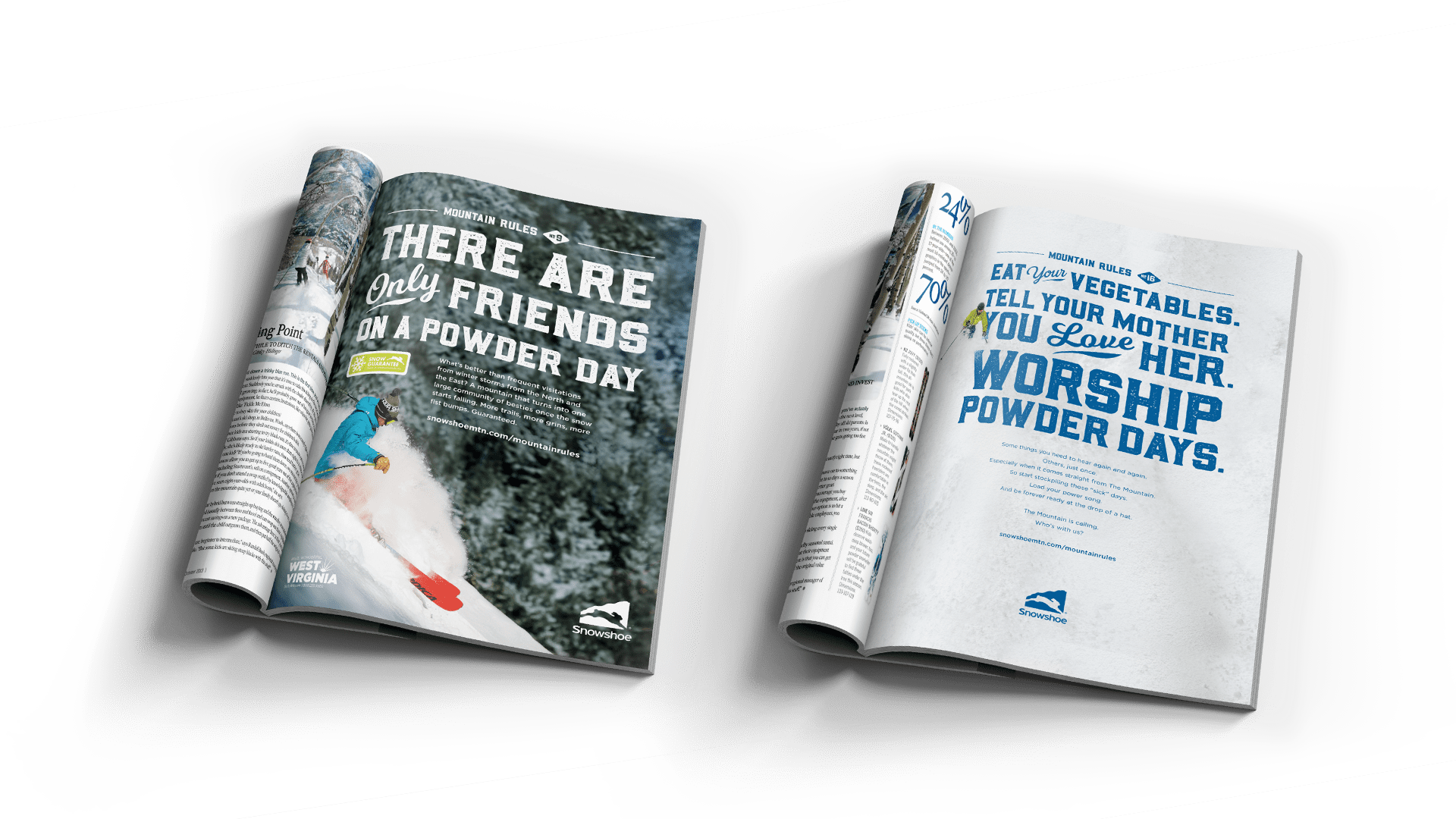 Snowshoe in West Virginia’s Allegheny Mountains is the #1 ski destination in the Mid-Atlantic. The winter business relied heavily on snow, snowmaking and terrain messaging, while the summer depended mostly on events and tactical offers. Our assignment: create a new long-term brand strategy that truly tapped into the culture of the mountain and cemented Snowshoe’s leadership position in the mid-Atlantic, no matter the time of year. Through research, we identified a new positioning that served as the guiding principle driving all initiatives, including operations, marketing, and employee communications. Mountain Rules, the resulting year-round brand campaign, engages its varying audiences between summer and winter, with a focus on storytelling and fresh social tactics.