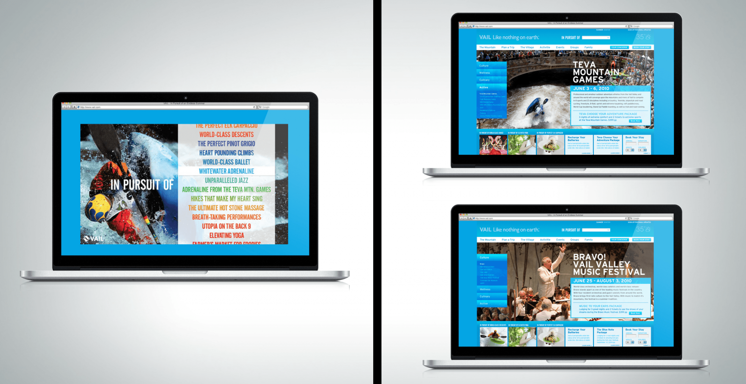 Vail is a mighty presence in winter, but struggled to center its summer business. We were asked to integrate, for the first time, the Vail summer marketing into the winter brand. So now, in place of powder-rich Back Bowls, we needed to tell the “Like nothing on earth” story in a whole new way. We centered it instead on the eclectic Vail community, a band of extraordinary individuals including world-famous climbers, kayakers, cyclists, musicians, and chefs. People of the world who have chosen to pursue their passions in Vail. Our campaign, “The pursuit of personal passions” featured short, intimate films about these famous residents housed on an interactive website where the navigation allowed visitors to explore their own passions. Across TV, magazine advertising, web, display, and social, the campaign contributed to a 22% increase in lodging tax, 8% increase in lodging, and 7% in website visits. For the first time in its history, Vail mountain was communicated as a single, year-round, brand experience.